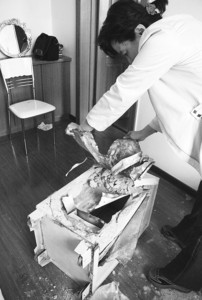 據(jù)房先生介紹,事發(fā)時(shí)休息室里共有兩臺(tái)保險(xiǎn)柜,另一臺(tái)保險(xiǎn)柜的背面也留有被撬過的痕跡,但由于該保險(xiǎn)柜比較堅(jiān)固才沒被小偷撬開。房先生用被盜的保險(xiǎn)柜存放現(xiàn)金等常用物品,而用另外一臺(tái)保存房證、存折等。房先生告訴記者,被盜保險(xiǎn)柜內(nèi)除了有幾萬元現(xiàn)金外,還有手機(jī)等其他貴重物品。“這個(gè)小偷太囂張了! ”房先生說,“我辦公室里放了不少酒,還有巧克力等食品,小偷開了一瓶紅酒喝,而且吃了不少巧克力。 ”房先生認(rèn)為,大概是沒有工具打開紅酒,小偷便在窗臺(tái)上敲碎了酒瓶口。記者看到辦公室的地面上依然留有玻璃碎片和已經(jīng)干透了的紅酒痕跡。